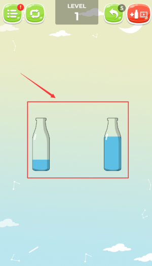 1、進(jìn)入游戲后,這里是第一關(guān),有兩個(gè)水瓶。