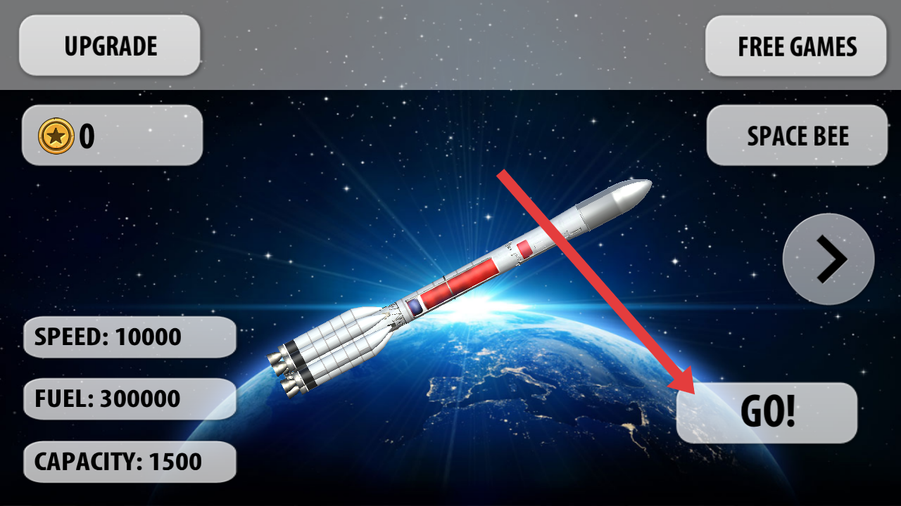 2、在火箭的主界面,查看速度、燃料等參數(shù),點擊【GO】按鈕發(fā)射火箭,開始太空探索。