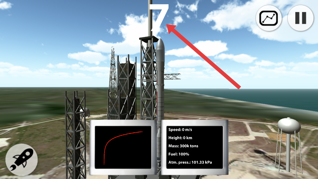 3、在火箭發(fā)射后,關(guān)注倒計時和飛行數(shù)據(jù),操控火箭順利升空,體驗太空飛行過程。