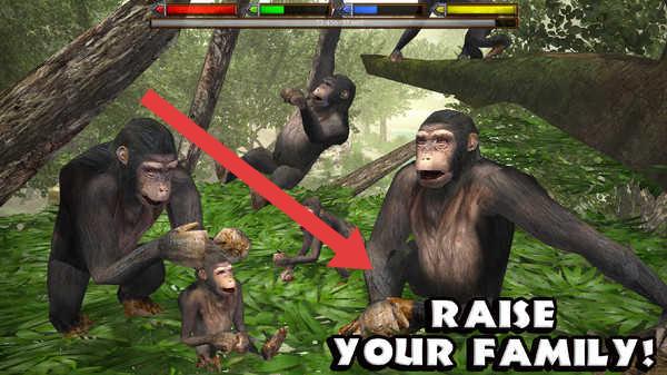 1、進入游玩的初始場景,按箭頭指示,了解“RAISE-YOUR-FAMILY!”相關玩法,涉及照顧和培養(yǎng)猩猩群體等操作。