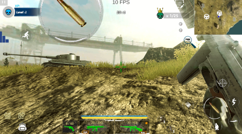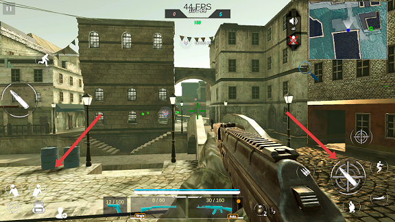 3、左手移動(dòng),右手開火,點(diǎn)擊下方道具欄切換武器,右上角顯示敵人位置。