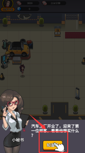 3、根據(jù)游戲提示,汽車工廠開業(yè),迎來第一個(gè)顧客,看看需要買什么。