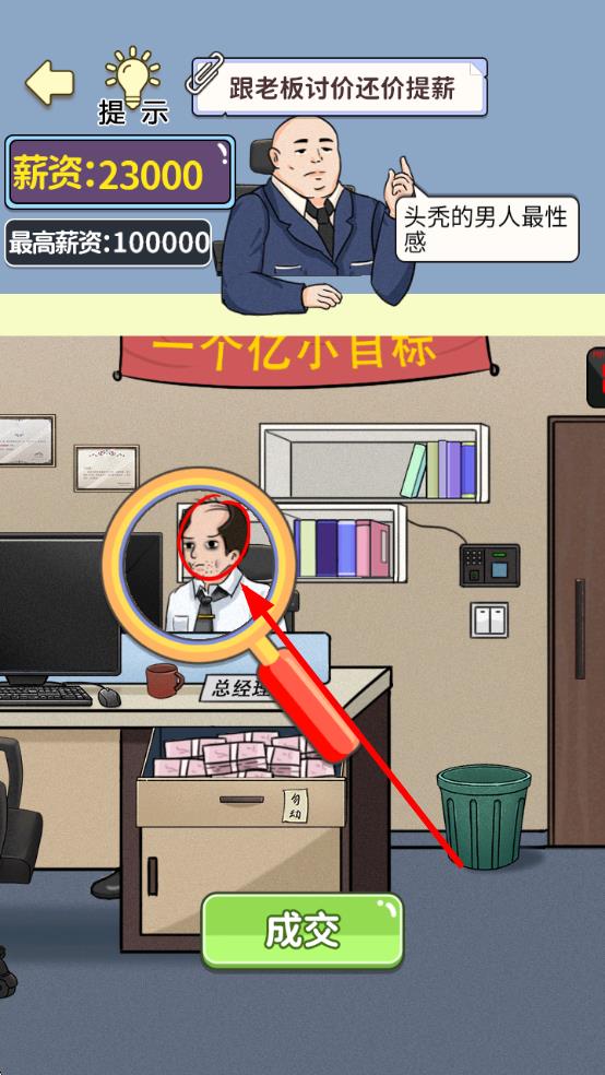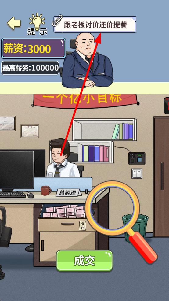 2、線索關(guān)聯(lián):將找茬發(fā)現(xiàn)的線索串聯(lián),結(jié)合關(guān)卡目標(biāo)推理,破解如薪資談判、劇情推進(jìn)等謎題,完成挑戰(zhàn)。