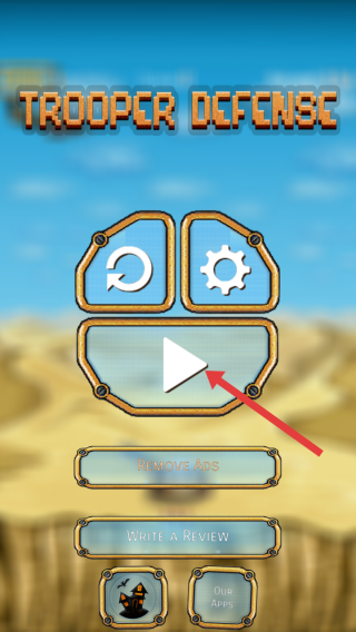 1、進入界面后,點擊【TRoOPER DEFENSE】主界面的三角形播放按鈕,開始游戲。