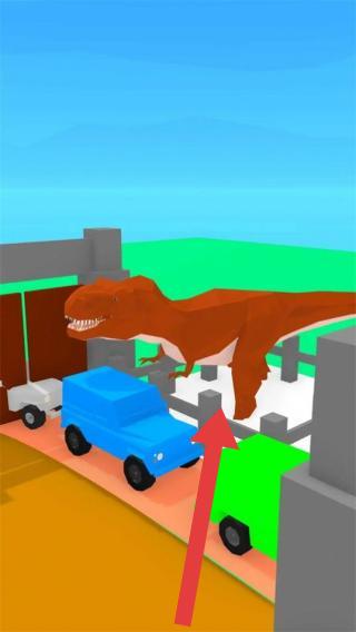 2、場景似恐龍園區(qū)或牧場,呈現(xiàn)恐龍與人類(車輛代表人類行動)在游戲場景里的互動情境。