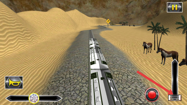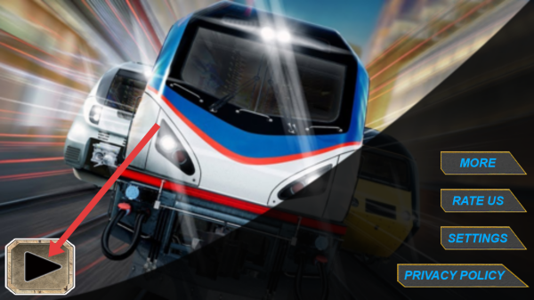 1、在超級火車駕駛模擬器的游戲啟動界面,點擊左下角的黑色三角形【開始按鈕】,進入火車駕駛場景。