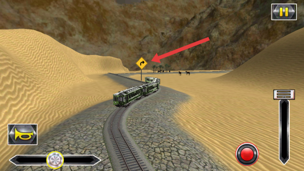 3、操控者需要留意火車軌道旁的【轉(zhuǎn)彎標識】,提前操作使火車順利轉(zhuǎn)彎,避免脫軌。