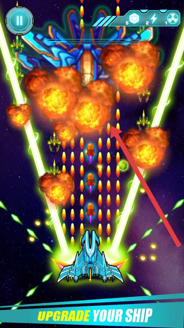 3、升級飛船(參考“UPGRADE-YOUR-SHIP”),提升火力、防御,應對后續(xù)更密集彈幕與強力boss,爭取高分。