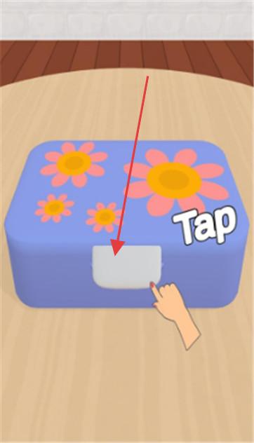 1、點(diǎn)擊寫(xiě)有“Tap”的按鈕,開(kāi)啟帶有花朵圖案的藍(lán)色便當(dāng)盒,正式進(jìn)入收納準(zhǔn)備流程。