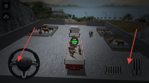 3、駕駛時,用左側(cè)方向盤控制方向,右側(cè)踏板控制加速/剎車,按場景提示(如運輸動物),安全駕駛,達成目標。