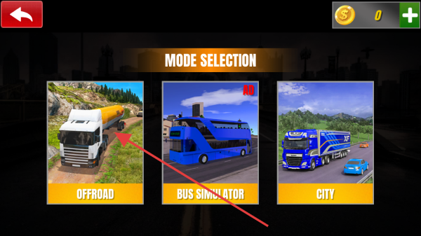 2、在模式選擇,選箭頭指的【OFFROAD】,進入越野駕駛場景,操控油罐車,適應復雜地形,完成運輸任務。