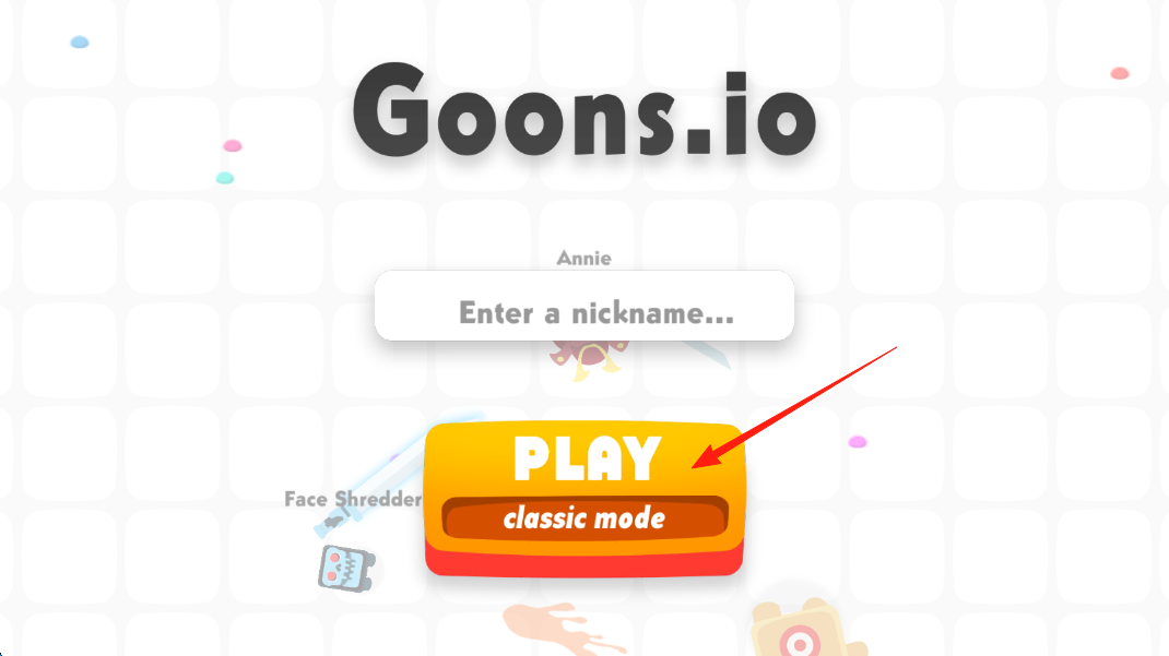 1、輸入昵稱后點(diǎn)擊“PLAY”,進(jìn)入經(jīng)典模式,操控角色持劍在地圖行動。