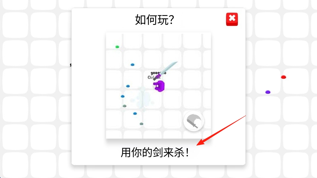2、依據(jù)“用你的劍來殺”提示,在地圖移動,用劍攻擊其他彩色角色。