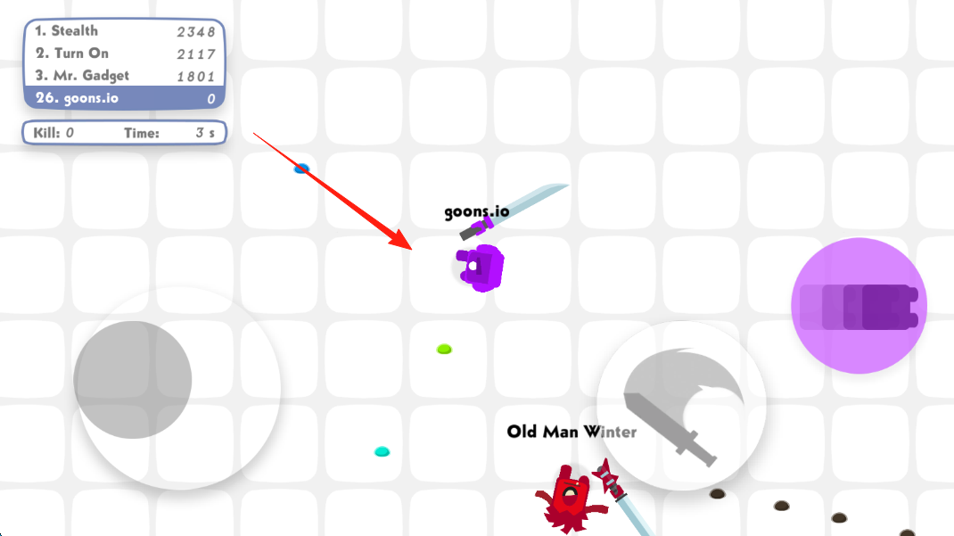 3、控制紫色角色,躲避敵人同時,用劍擊殺對手,積累擊殺數(shù)提升排名。