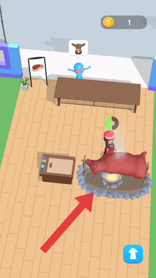 3、玩家經(jīng)營(yíng)餐廳,圖中顯示金幣、角色、烤肉設(shè)施、顧客用餐及金幣收益等元素,需完成烹飪、服務(wù)顧客、收獲金幣等操作,體驗(yàn)餐廳經(jīng)營(yíng)流程。
