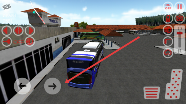 3、駕駛時(shí),利用箭頭指向的方向按鍵,操控巴士行駛,按交通規(guī)則,在場(chǎng)景中完成路線運(yùn)輸任務(wù)。