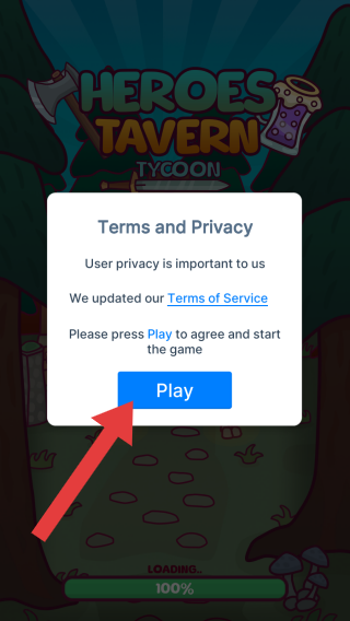 1、顯示“TermsandPrivacy”相關(guān)內(nèi)容,提示用戶點(diǎn)擊【Play】同意服務(wù)條款并開始游戲。