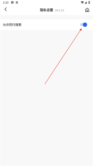 4、在隱私設(shè)置頁面找到允許同行搜索功能開關(guān),將其開啟即可。