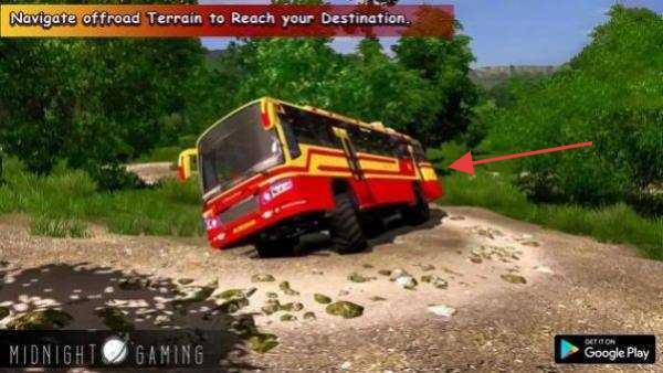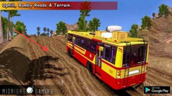 2、駕駛巴士翻越箭頭指示的上坡、顛簸路段,克服地形挑戰(zhàn)。