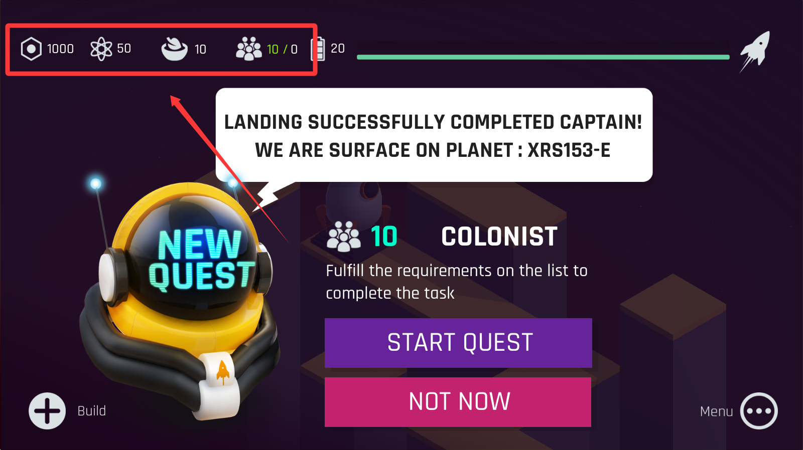 4、任務(wù)系統(tǒng)提供清晰的目標(biāo)和豐厚獎勵,玩家通過完成探險、建設(shè)和防御等任務(wù)獲取資源,解鎖新科技和設(shè)施,逐步擴展殖民版圖。