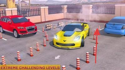 1、選關(guān)卡,駕駛黃色超跑,避開“EXTREME CHALLENGING LEVELS”障礙(錐桶),精準(zhǔn)入庫。