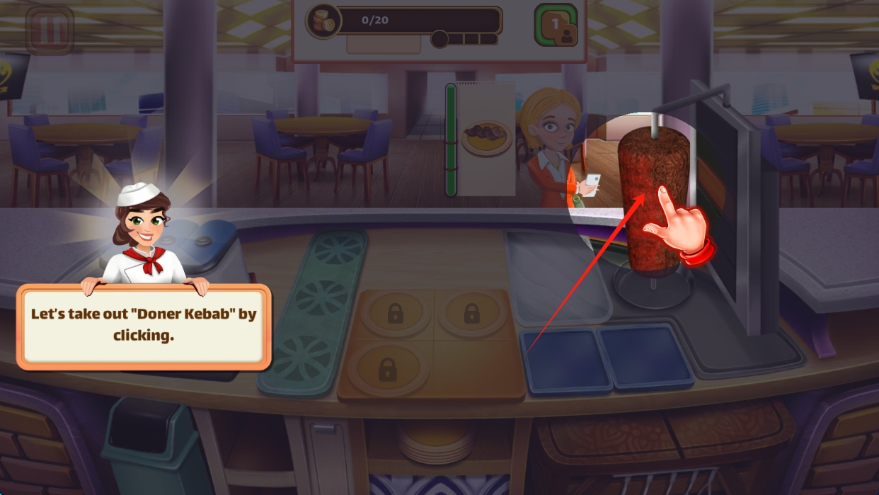 1、點(diǎn)擊拾取,利用連續(xù)完成高難度操作觸發(fā)"燒烤大師"狀態(tài),通過暫停功能調(diào)整策略與廚具。