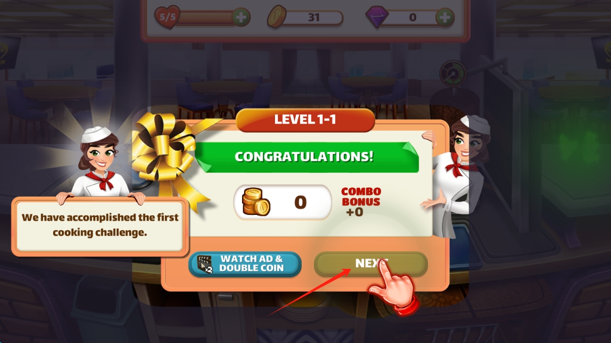 3、成長系統(tǒng):通過完成訂單獲得經(jīng)驗(yàn)值提升等級(jí),解鎖新菜品與技能,使用金幣購買基礎(chǔ)升級(jí),鉆石可購買高級(jí)技能與加速成長,支持觀看廣告免費(fèi)獲取隨機(jī)資源。