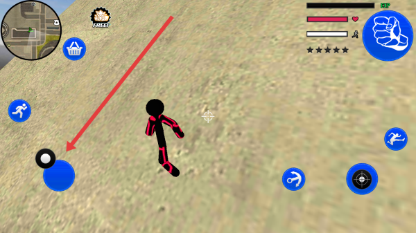 2、用左側(cè)虛擬搖桿移動(dòng)角色,右側(cè)按鍵釋放技能(拳頭、繩索),按箭頭指引,在野外場(chǎng)景熟悉操作,積累戰(zhàn)斗經(jīng)驗(yàn)。