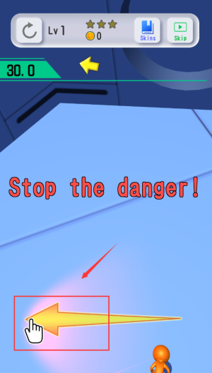 1、進入游戲后,根據(jù)游戲指引滑動小人物。