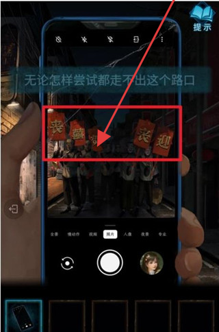 1、在路口場景,聚焦紅框“歡迎”燈籠,點擊互動,查看是否藏線索(如文字、圖案),用于后續(xù)解謎。