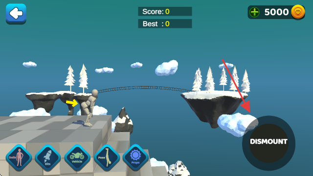 3、點(diǎn)擊右側(cè)【DISMOUNT】按鈕,觸發(fā)火柴人行動,嘗試穿越場景。