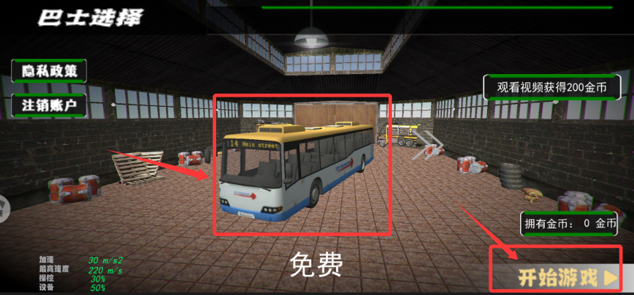 2、在車隊(duì)中選擇一輛外觀性能俱佳的巴士,點(diǎn)擊開(kāi)始后便可發(fā)動(dòng)引擎準(zhǔn)備啟程。