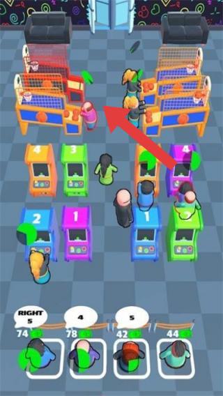 3、展現(xiàn)了街機廳內(nèi)玩家經(jīng)營場景,有不同顏色的街機設(shè)備、顧客,玩家需管理街機、服務(wù)顧客來打造盈利的街機帝國,體驗?zāi)M經(jīng)營樂趣。