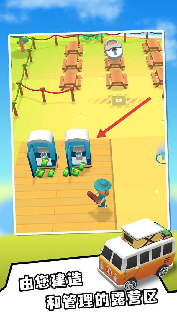 3、精美卡通環(huán)境操作:玩家角色在精美的卡通環(huán)境中進(jìn)行各式各樣的操作挑戰(zhàn),可自由駕駛不同汽車前往露營(yíng)地,搭建帳篷、布置營(yíng)地設(shè)施,還能與顧客互動(dòng)交流。