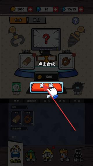 2、準備好材料后,點擊【合成】按鈕,花費500金幣,完成道具合成,解鎖新內容。