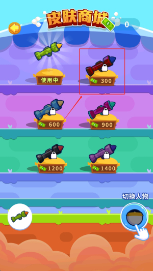 2、進(jìn)入皮膚商城瀏覽武器外觀,選中紅框標(biāo)記的300金幣皮膚,點(diǎn)擊"使用中"按鈕完成購(gòu)買(mǎi)并裝備。