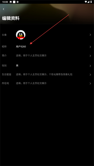 4、進(jìn)入編輯資料的頁面內(nèi),再次點(diǎn)擊昵稱的區(qū)域位置。