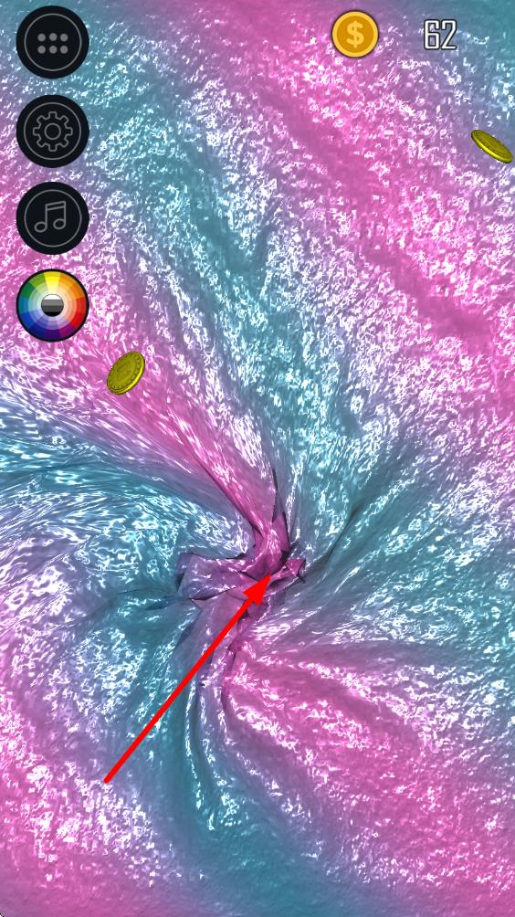 2、打開材質(zhì)庫添加亮片、熒光粉等裝飾元素,拖動滑塊調(diào)節(jié)粘液粘度與彈性,捏合屏幕可將多種顏色混合成漸變效果。