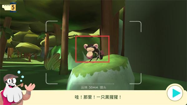 1、下載安裝完成之后進入游戲,游戲中我們每一次進入叢林都只能拍攝五張照片,所以每一張底片都要慎用,不要浪費了。