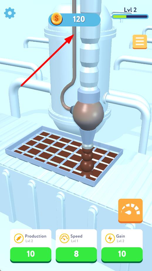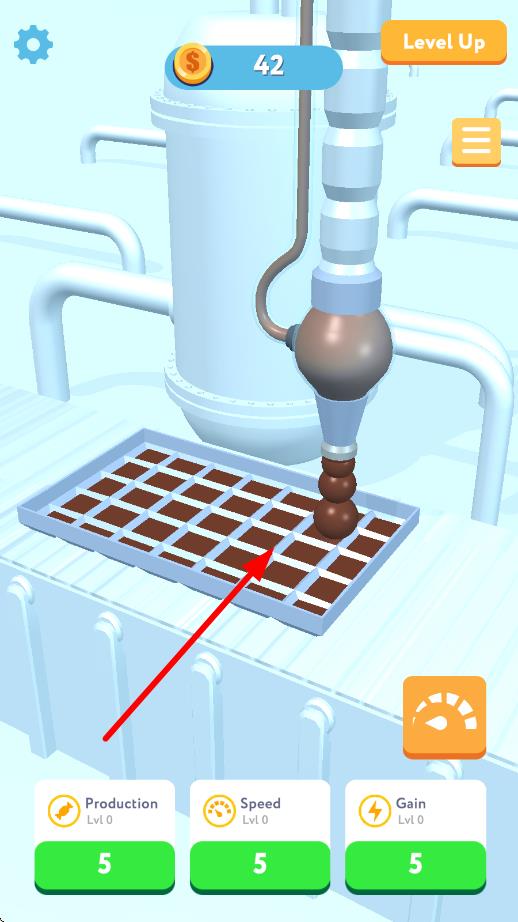 1、進(jìn)入界面先在工廠界面放置基礎(chǔ)巧克力生產(chǎn)線,點(diǎn)擊空地部署攪拌器、成型機(jī)等設(shè)備,滑動(dòng)屏幕調(diào)整車間布局。