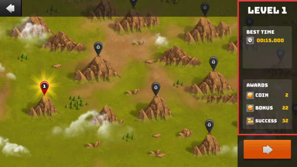2、在【LEVEL1】關卡中,點擊【黃色箭頭】,多變的地圖上開始挑戰(zhàn)。