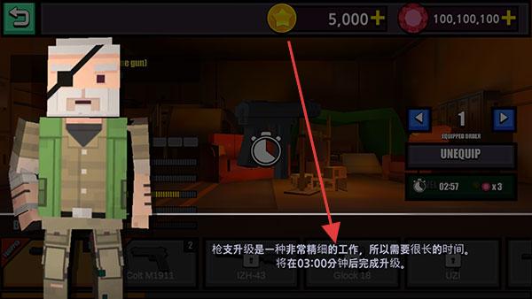 3、升級提示,武器升級需時間,顯示“03:00分鐘后完成”,等待或用加速道具,完成后獲更強武器。