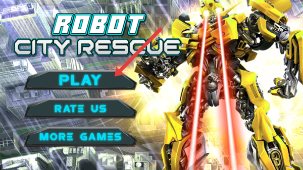 1、在改造機器人戰(zhàn)斗的游戲主界面,需要點擊【PLAY】按鈕,開啟機器人城市救援冒險。
