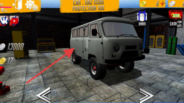 3、車(chē)庫(kù)中確認(rèn)灰色UAZ2206車(chē),檢查屬性后,開(kāi)啟越野運(yùn)輸任務(wù)。