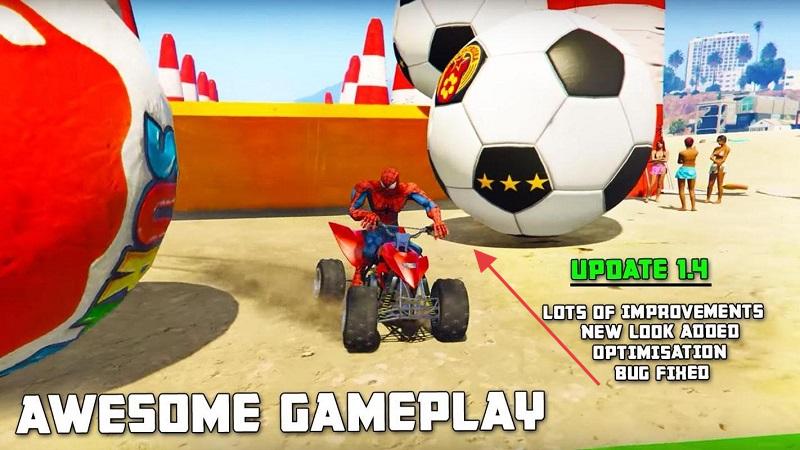3、控制角色駕駛摩托,在沙灘場景,避開巨型足球,完成越野行駛。
