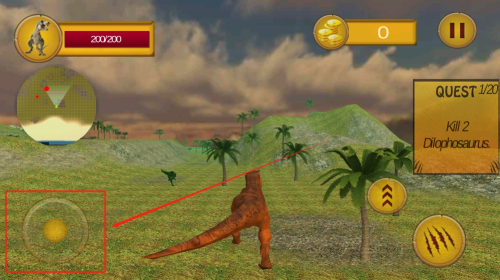3、通過虛擬搖桿操控恐龍移動(dòng),使用特定手勢(shì)發(fā)動(dòng)攻擊與特殊能力。
