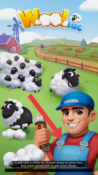 1、呈現(xiàn)了農(nóng)場場景,有羊、人物、風車、谷倉等元素,文字說明“剪過毛的羊需要一段時間才能長出毛,購買更多可處置物品來獲得更多羊”,屬于模擬經(jīng)營養(yǎng)羊剪羊毛的內(nèi)容。