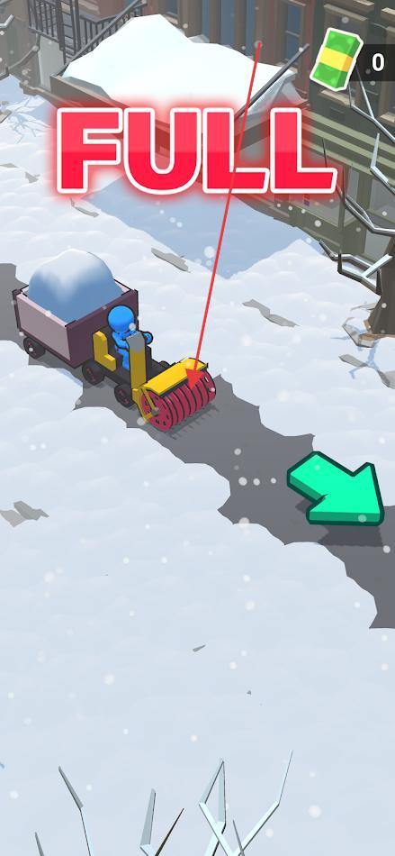 2、滿“FULL”就倒!看到紅大字,跟綠箭頭,2秒卸雪,空車(chē)再清,效率+30%,超賺,早解鎖新車(chē)型。