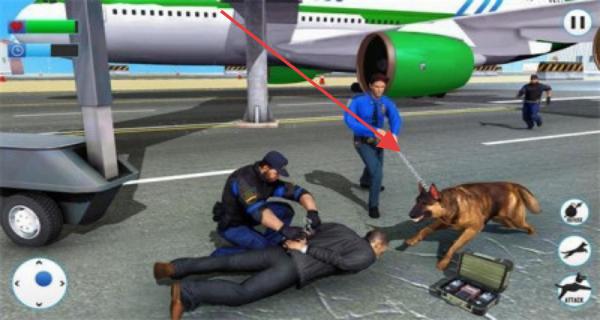 2、發(fā)現(xiàn)嫌犯后,在飛機(jī)坪場(chǎng)景,指揮警察與警犬配合,快速控制(如按壓嫌犯),利用警犬威懾,完成抓捕,防止危險(xiǎn)擴(kuò)散。