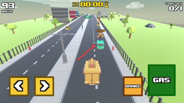 3、駕駛餐車,用【GAS】【BRAKE】控速,避車前往標(biāo)【FEED】的目標(biāo)點(diǎn)送餐。